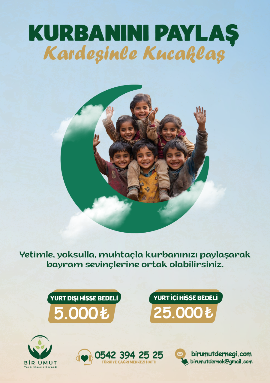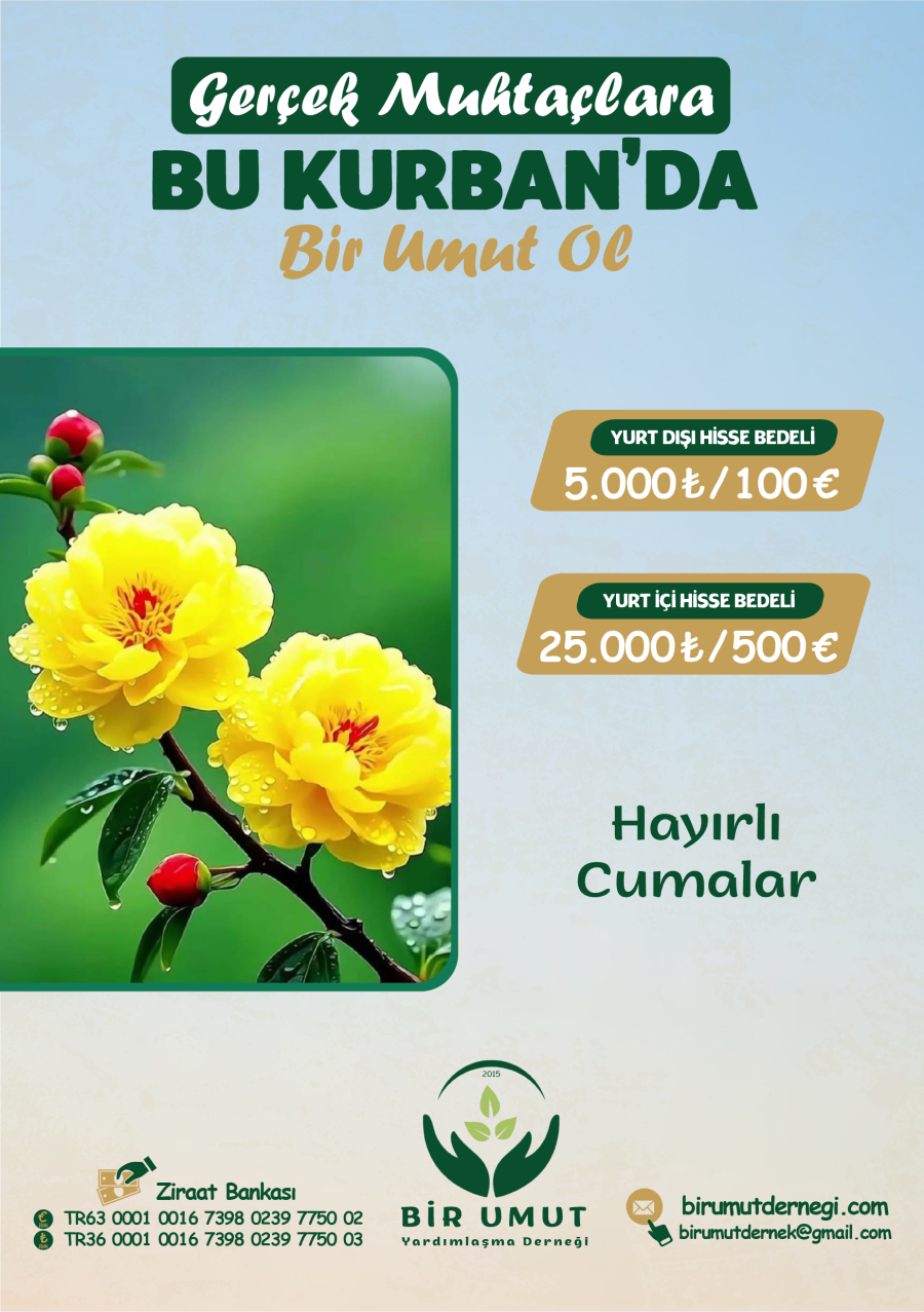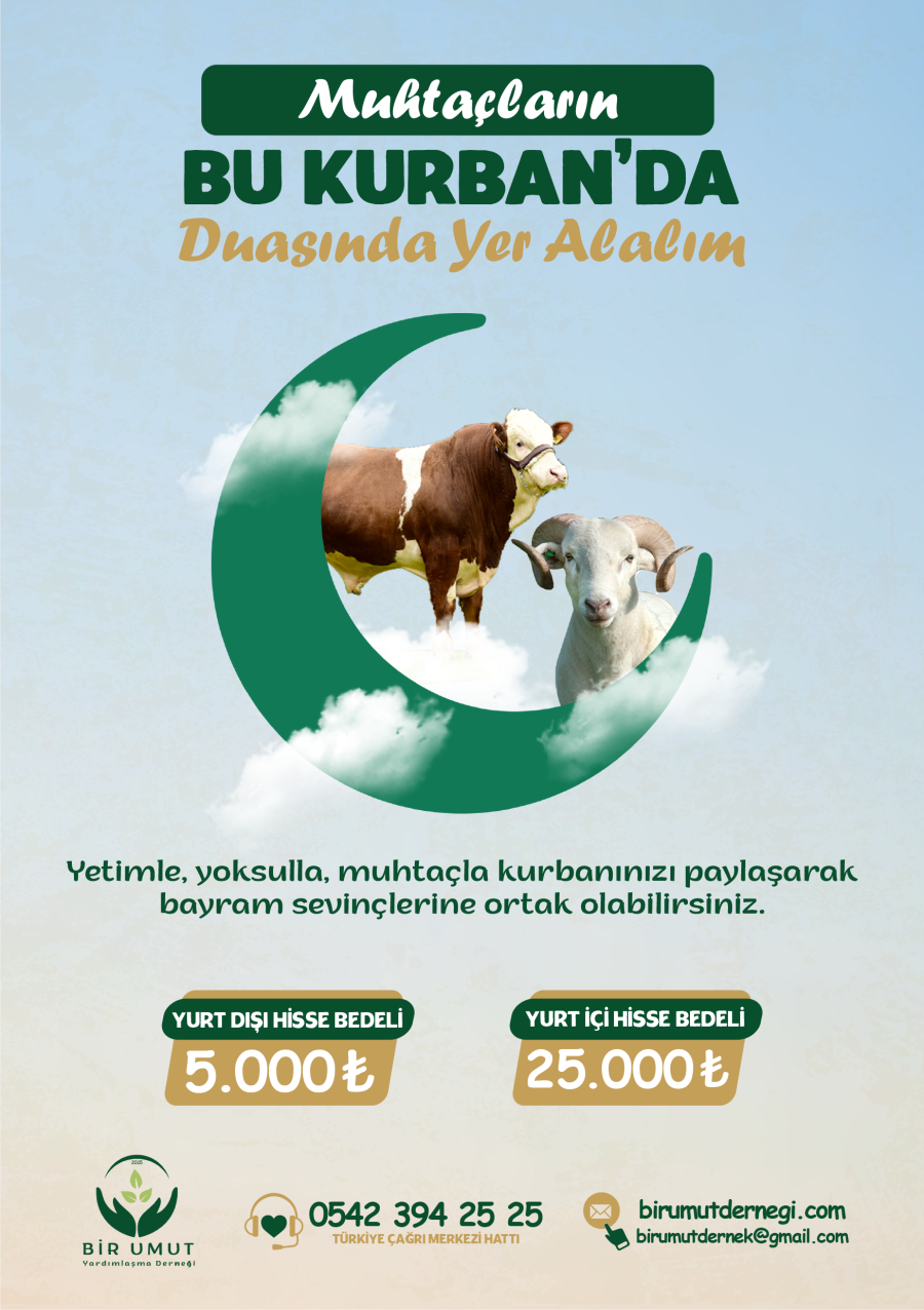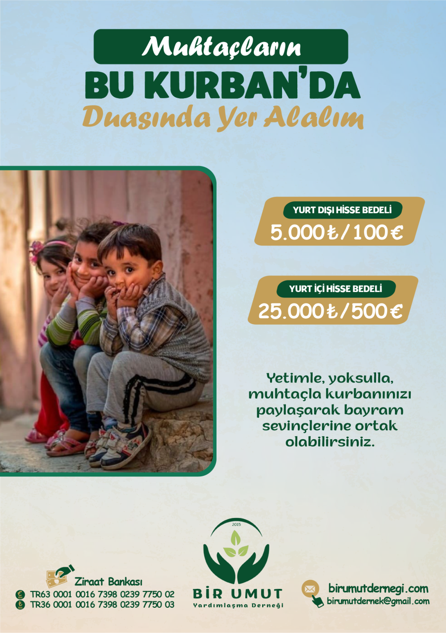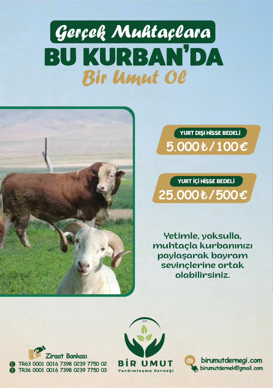 2026 Kurban Organizasyonumuzu başlattık. Kurbanlarımızı Türkiye`de ve muhtaçların en yoğun olduğu Habeşistan (Etiyopya)’da fıkha uygun şekilde keserek aynı gün taze et olarak ihtiyaç sahiplerine dağıtılacaktır.
